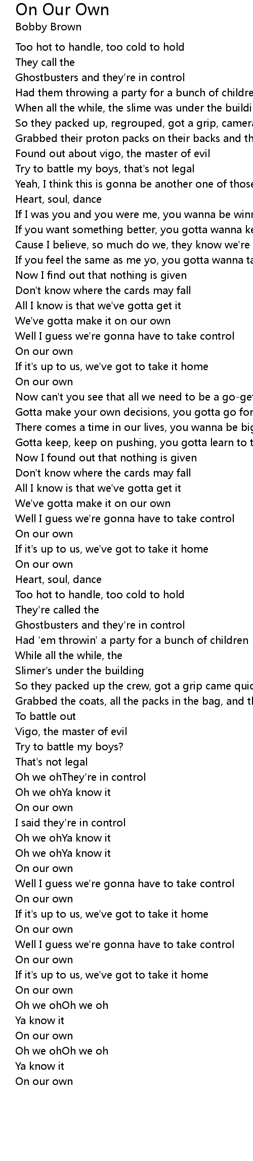 On Our Own Lyrics