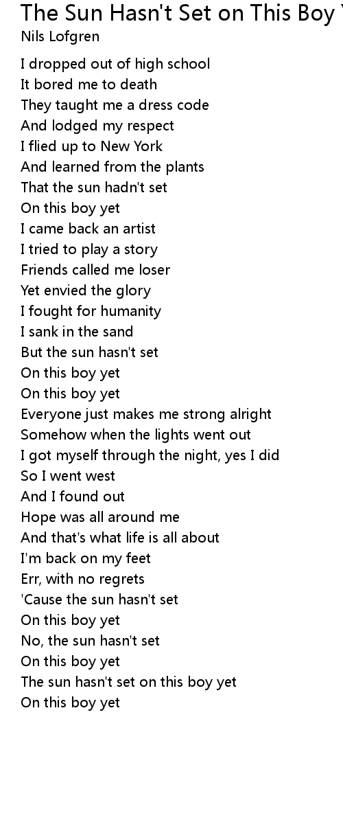 The Sun Hasn't Set on This Boy Yet Lyrics
