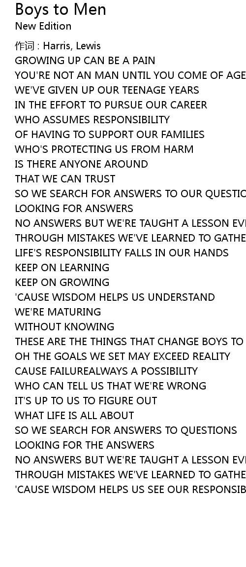 | THESE ARE THE THINGS THAT CHANGE BOYS TO MEN | |