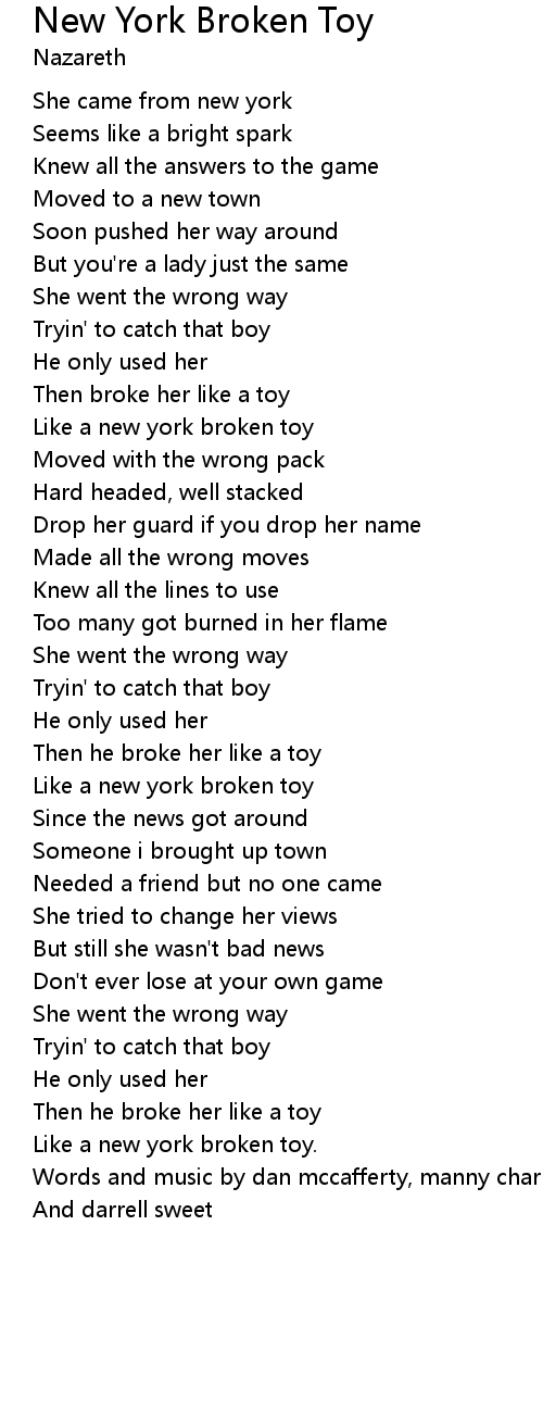 Words and music by dan mccafferty, manny charlton, pete agnew,