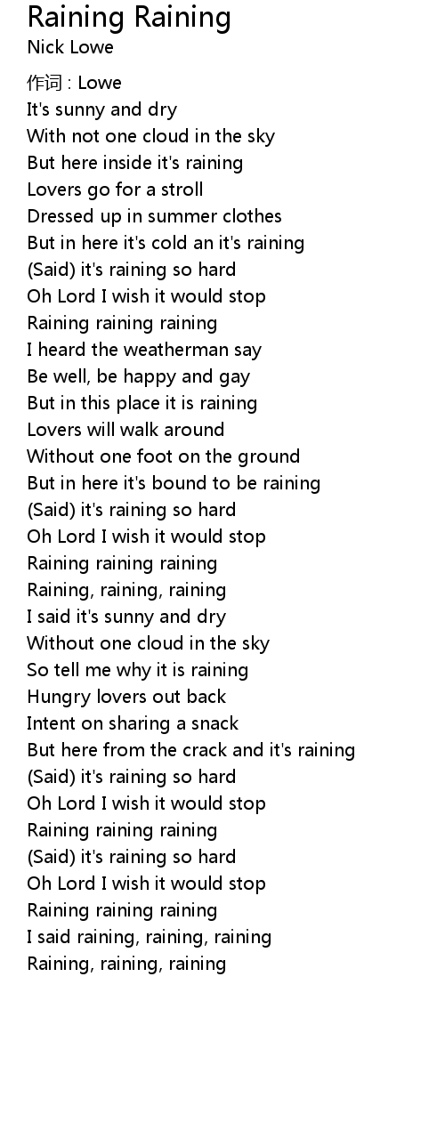 | Raining, raining, raining |