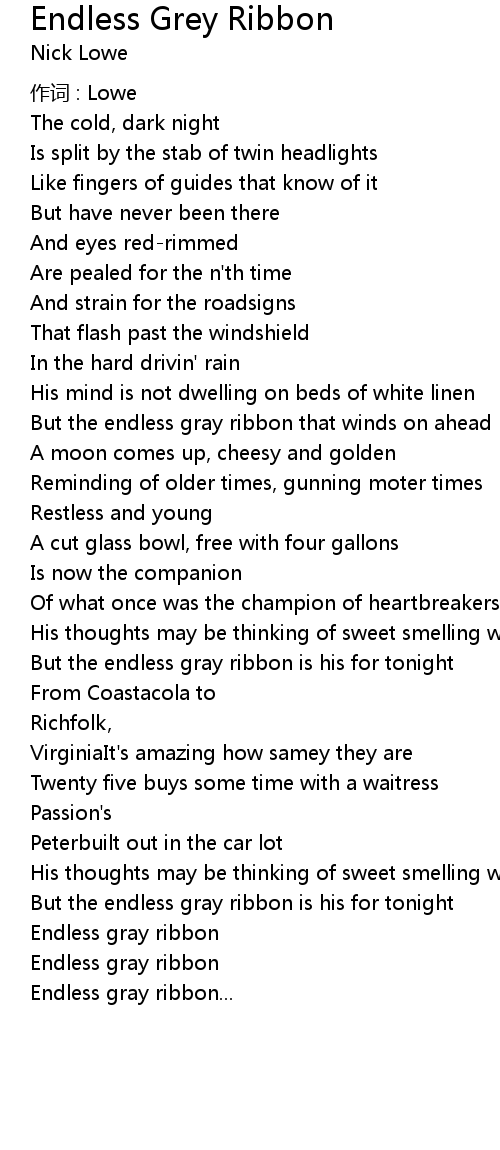 | But the endless gray ribbon that winds on ahead | |