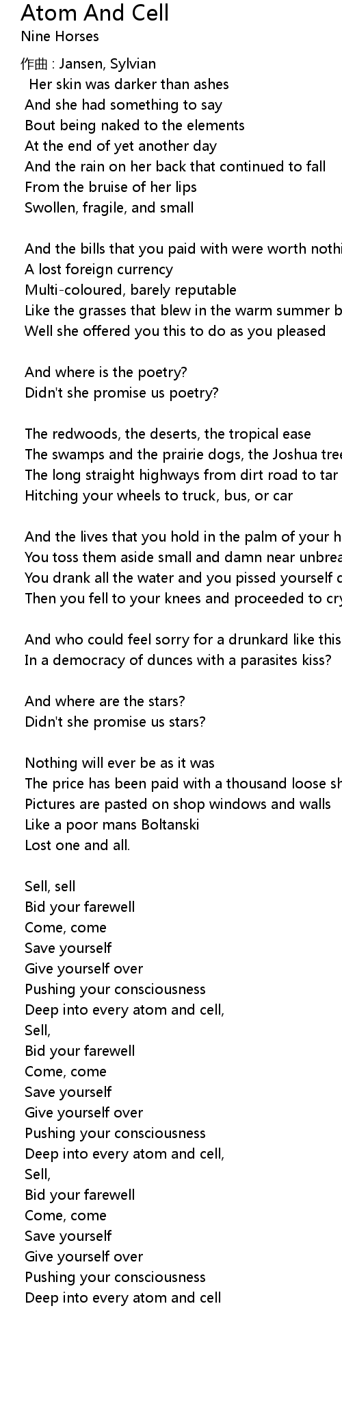| Song | Atom And Cell |
