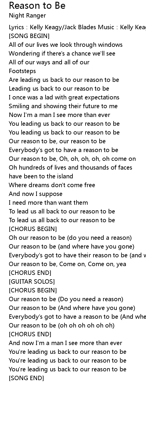 | Everybody' s got to have a reason to be | |