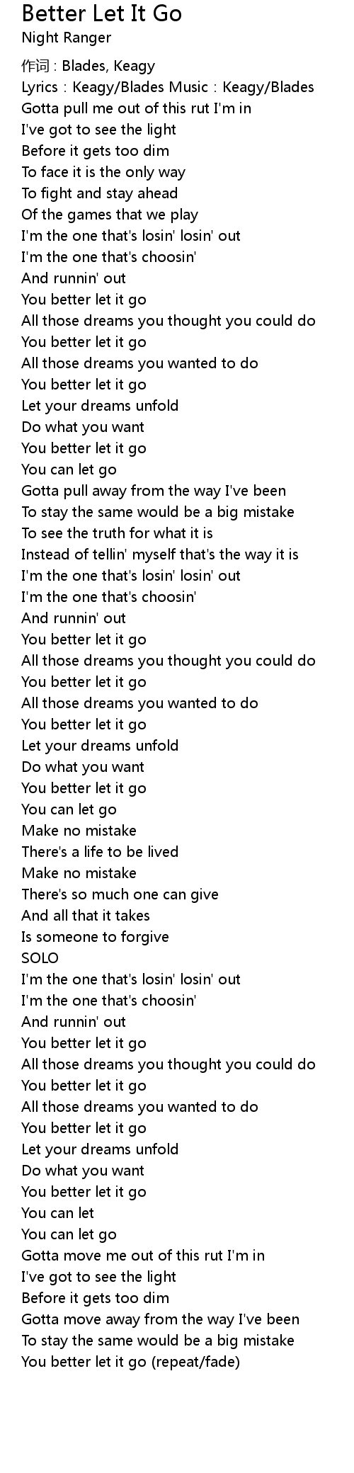 | You better let it go repeat fade |