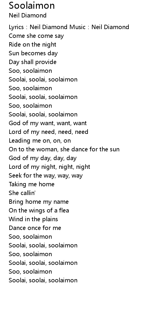 | Lyrics: Neil Diamond Music: Neil Diamond | |