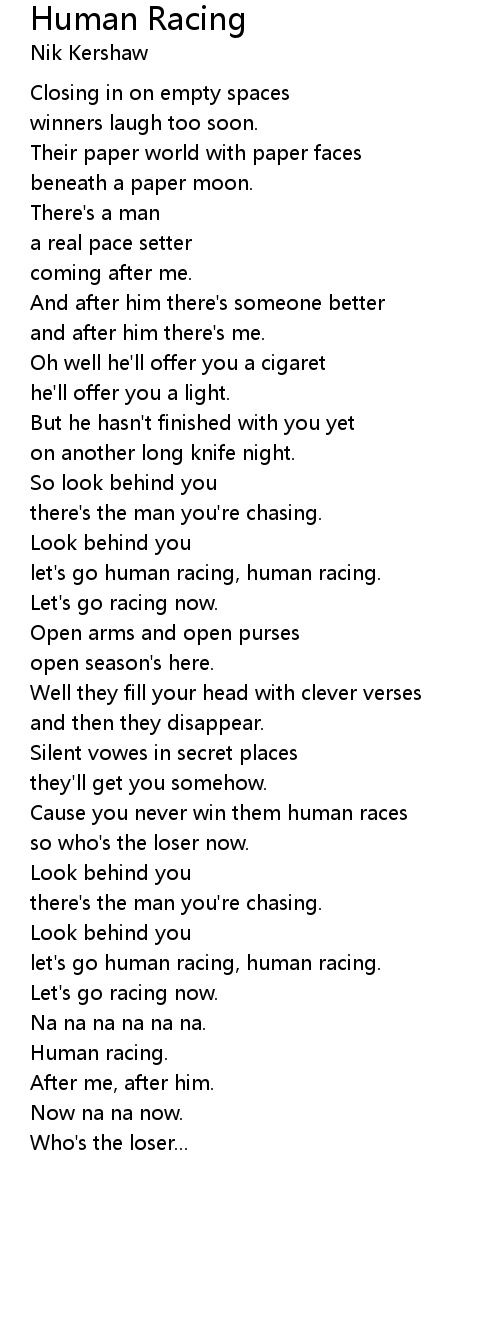 let's go human racing, human racing. |