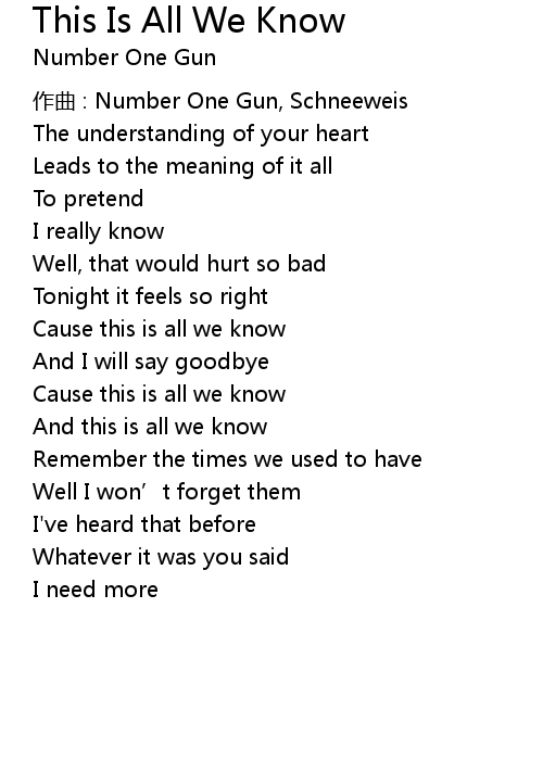 | Cause this is all we know | |