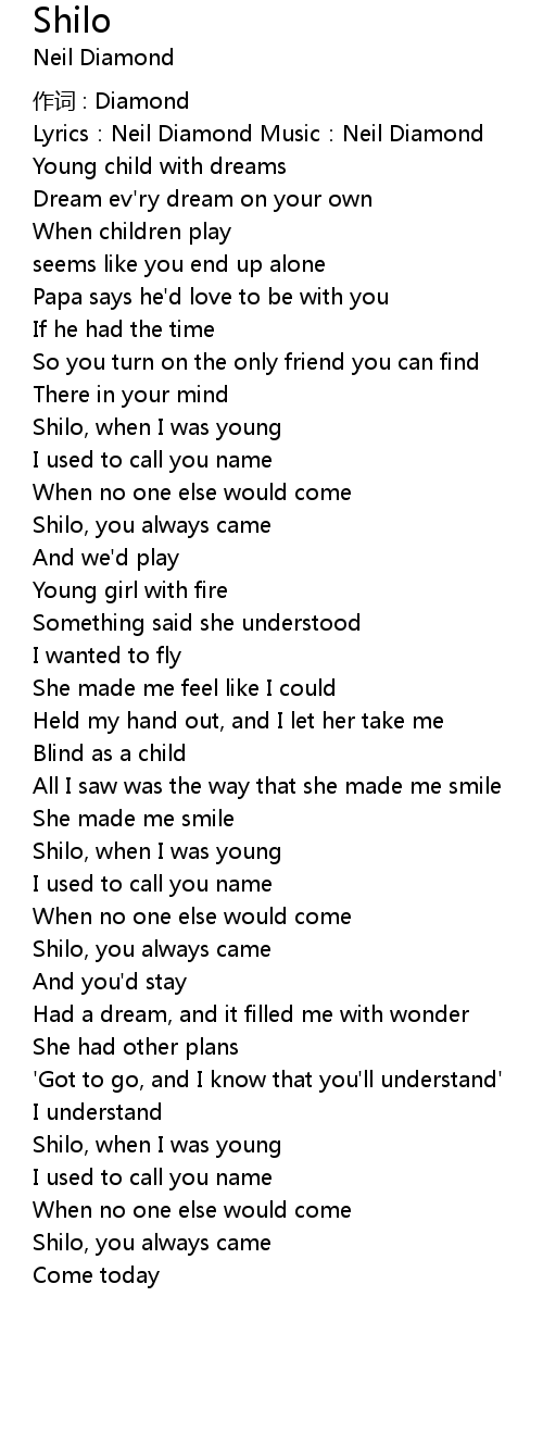 | Lyrics:Neil Diamond Music:Neil Diamond | |