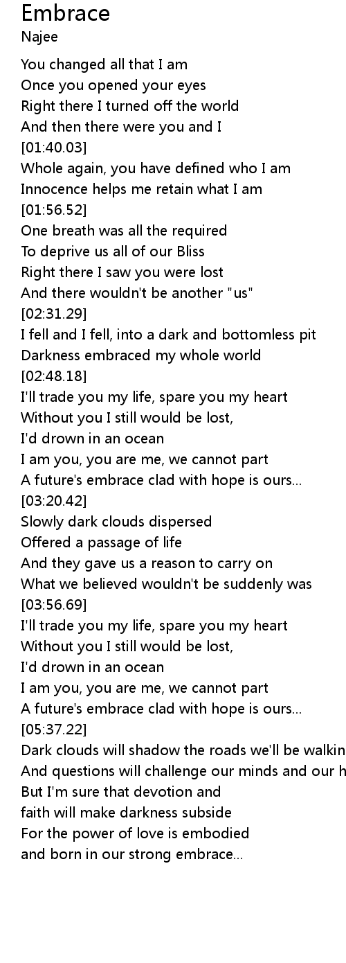 | [03:13.62] | A future's embrace clad with hope is ours... |