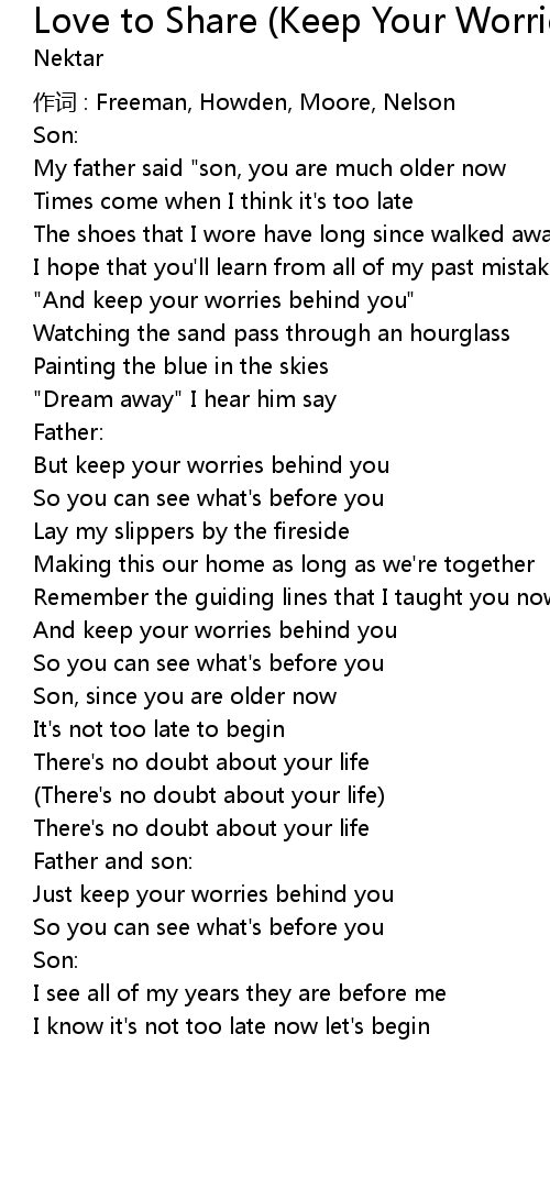 | Song | Love to Share (Keep Your Worries Behind You) |