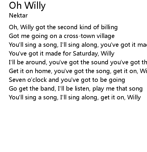 | You'll sing a song, I'll sing along, get it on, Willy |