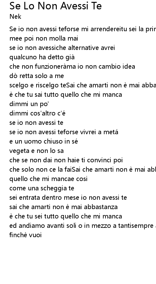 | Se io non avessi teforse mi arrendereitu sei la prima chefa una viaggio dentro mee poi non molla mai | |