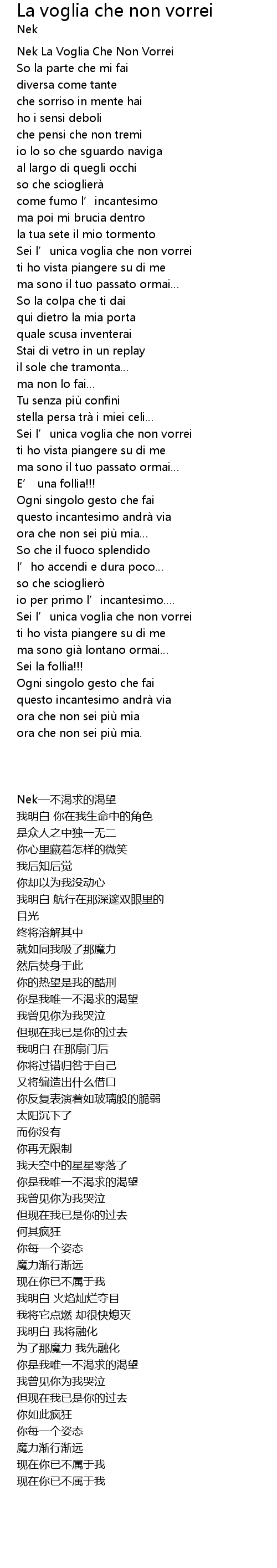 | [00:01.80] | Nek La Voglia Che Non Vorrei |