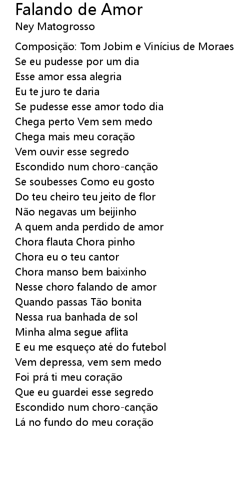 | Nesse choro falando de amor | |