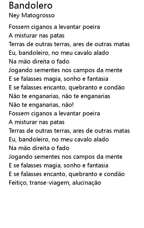 | Eu, bandoleiro, no meu cavalo alado | |