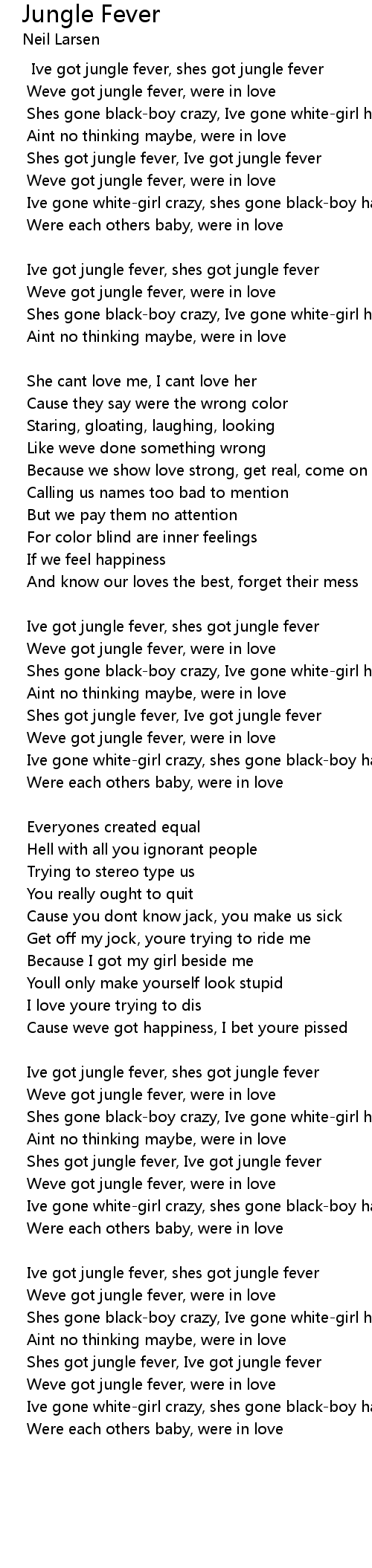 Ive got jungle fever, shes got jungle fever |
