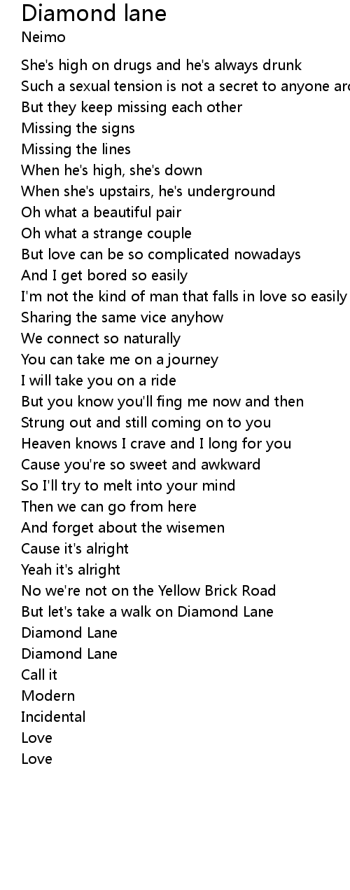 But let's take a walk on Diamond Lane |