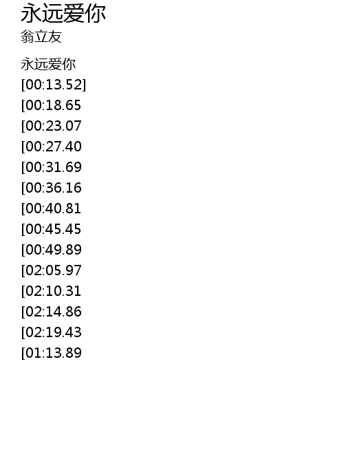 | [02:32.79][02:14.86][01:03.06] | 永远爱你 千年万年 |