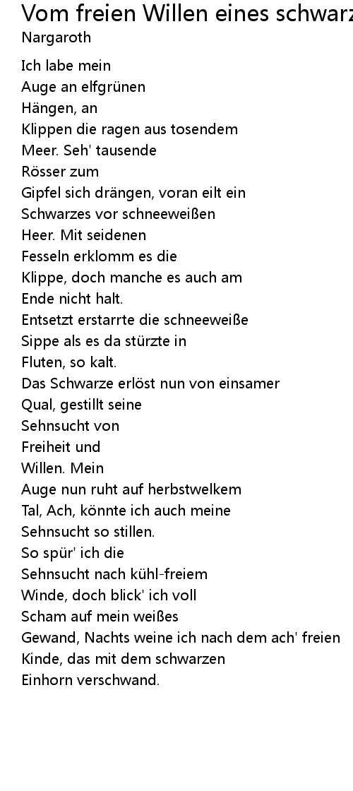 | Song | Vom freien Willen eines schwarzen Einhorns |