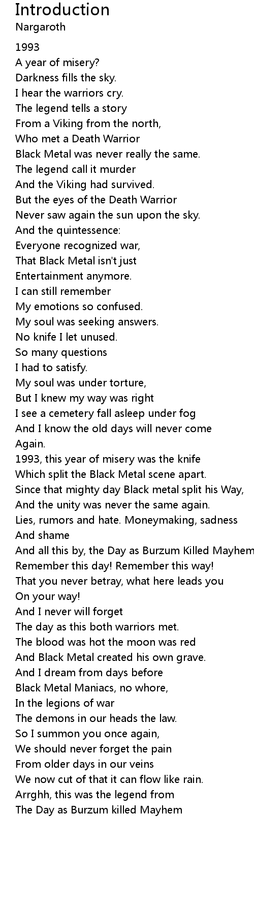 And all this by, the Day as Burzum Killed Mayhem.