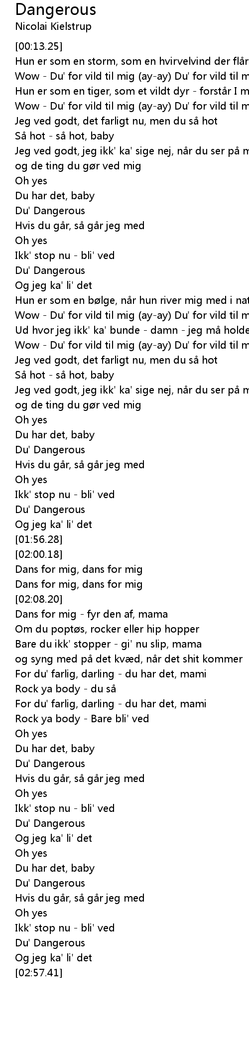 | [00:32.36] | Jeg ved godt, det farligt nu, men du s hot |