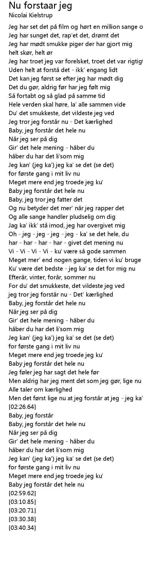 | [00:25.33] | Uden helt at forstå det - ikk' engang lidt |