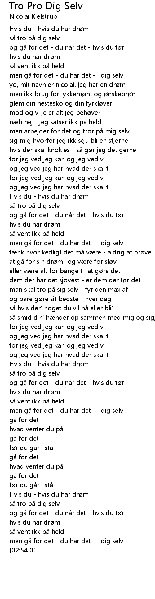 | [00:45.32] | men arbejder for det og tror p mig selv |