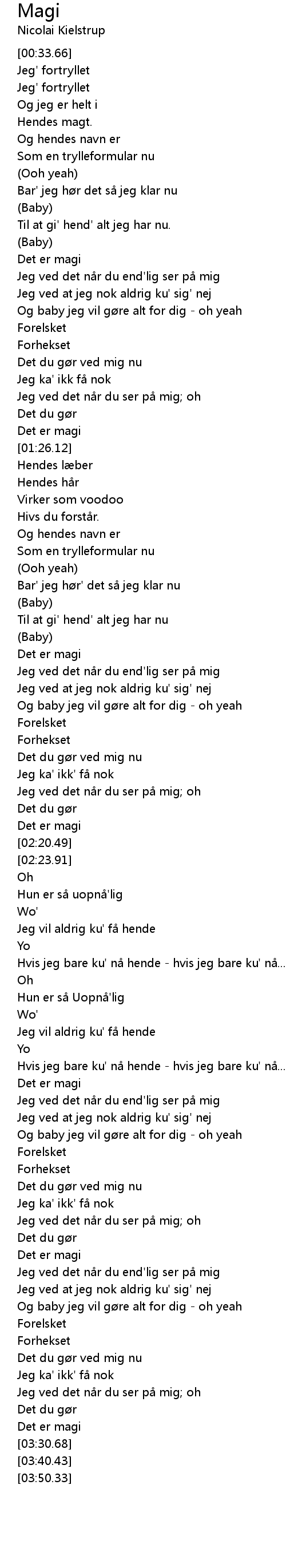 | [00:37.64] | Jeg' fortryllet |