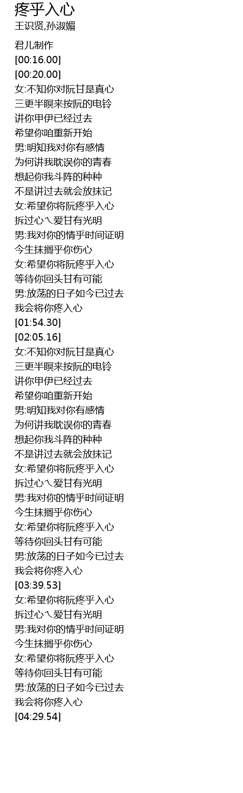 | [03:16.29] | 女:希望你将阮疼乎入心 |