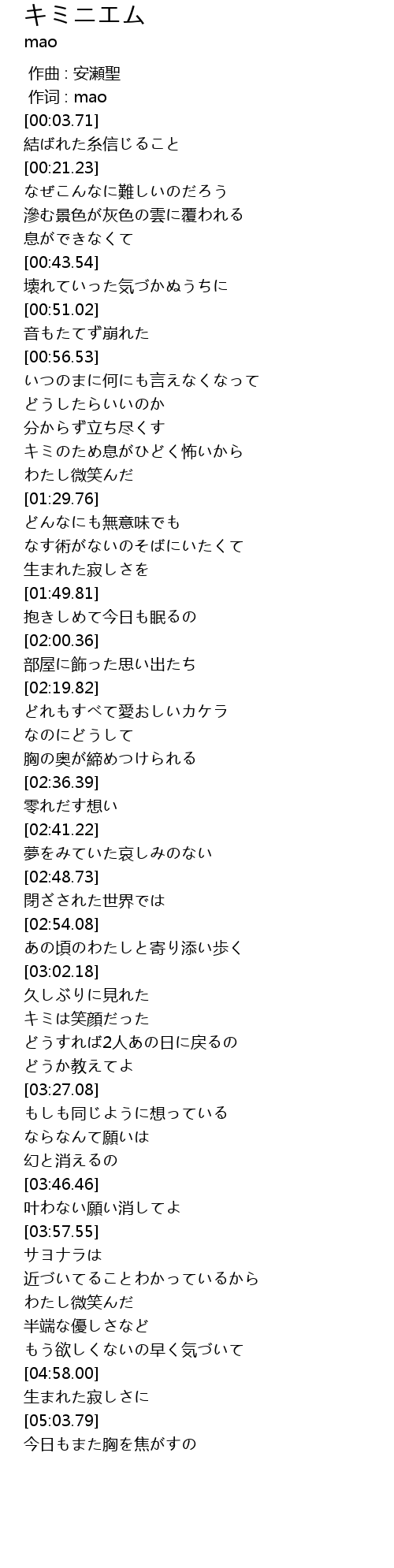 | [03:21.43] | どうか教えてよ |