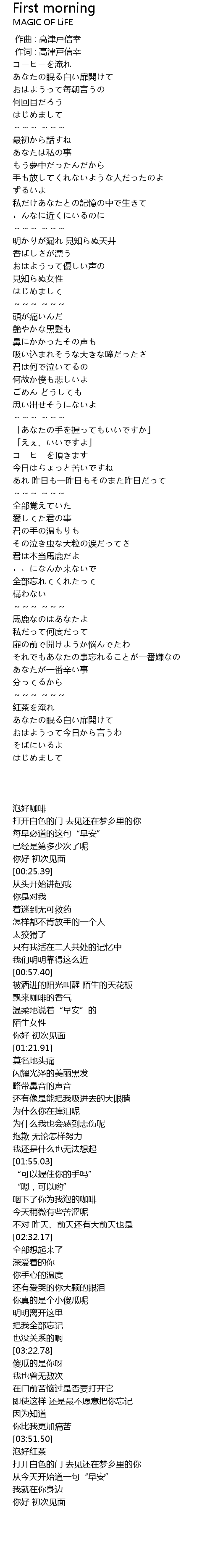 | [00:19.01] | おはようって毎朝言うの |