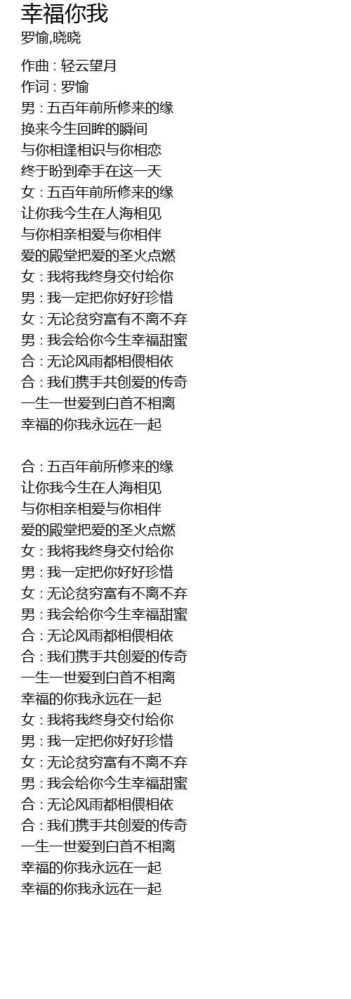 | xìng fú de nǐ wǒ yǒng yuǎn zài yì qǐ |