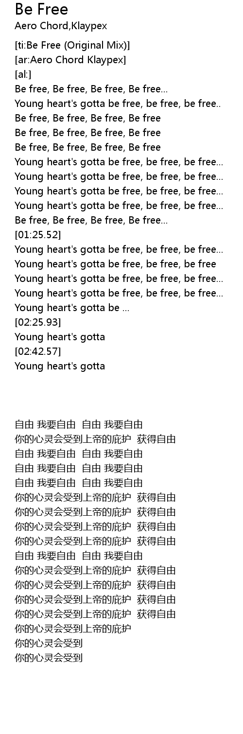| [00:36.51] | Be free, Be free, Be free, Be free |