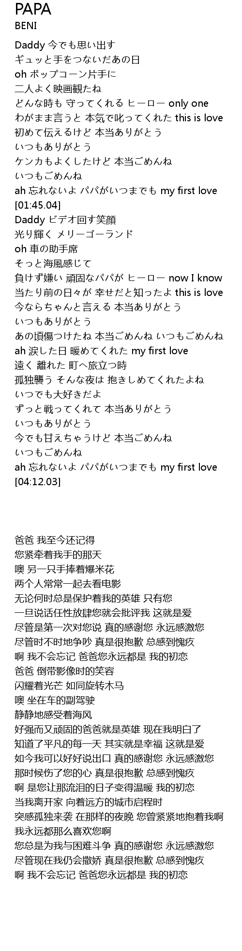 | [04:01.05] | ah 忘れないよ パパがいつまでも my first love |