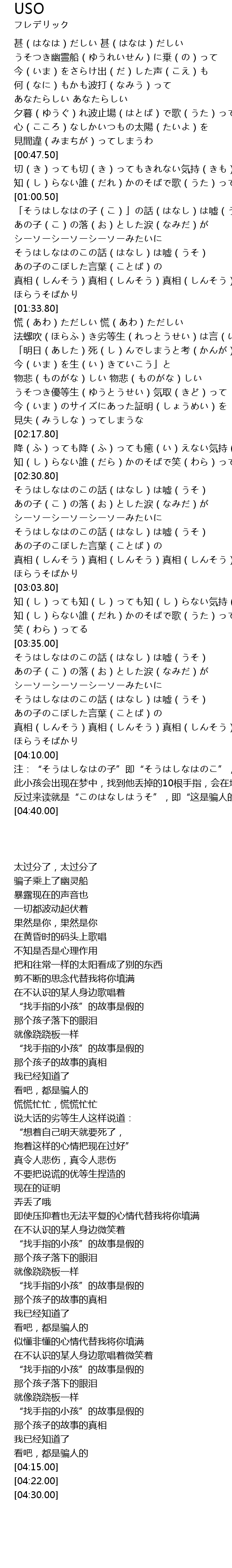 | [04:30.00] | 反过来读就是“このはなしはうそ”,即“这是骗人的” |