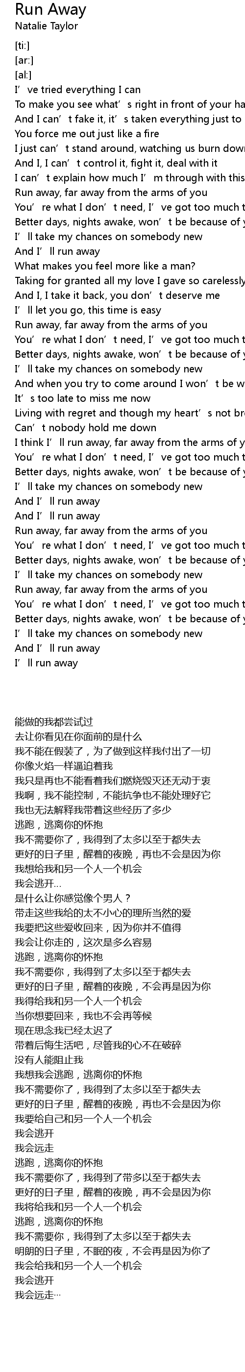 | [00:41.19] | Run away, far away from the arms of you |