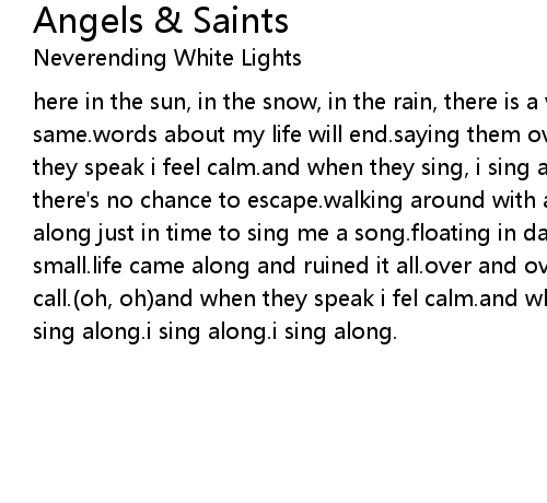 here in the sun, in the snow, in the rain, there is a voice repeating the same.words about my life will end.saying them over and over again.(oh, oh)and they speak i feel calm.and when they sing, i sing along.breath in my life, there's no chance to escape.walking around with a foot in the grave.they'll come along just in time to sing me a song.floating in darkness, all time has run small.life came along and ruined it all.over and over and over again many call.(oh, oh)and when they speak i fel calm.and when they sing, i sing along.i sing along.i sing along.i sing along. |