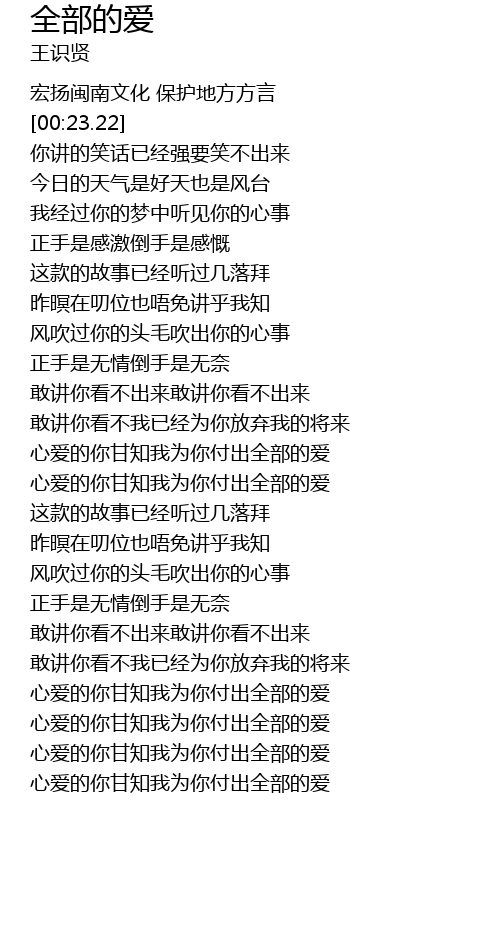 | [00:12.53] | 宏扬闽南文化 保护地方方言 |
