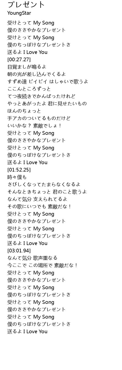| [03:50.15] | 僕のちっぽけなプレゼントさ |