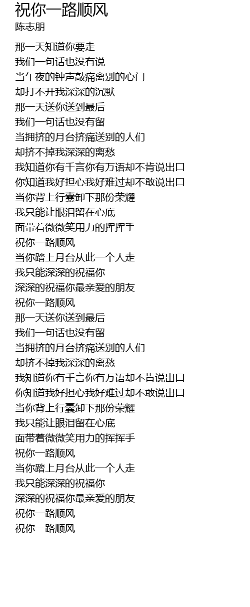 | [01:46.840] | zhù nǐ yí lù shùn fēng |