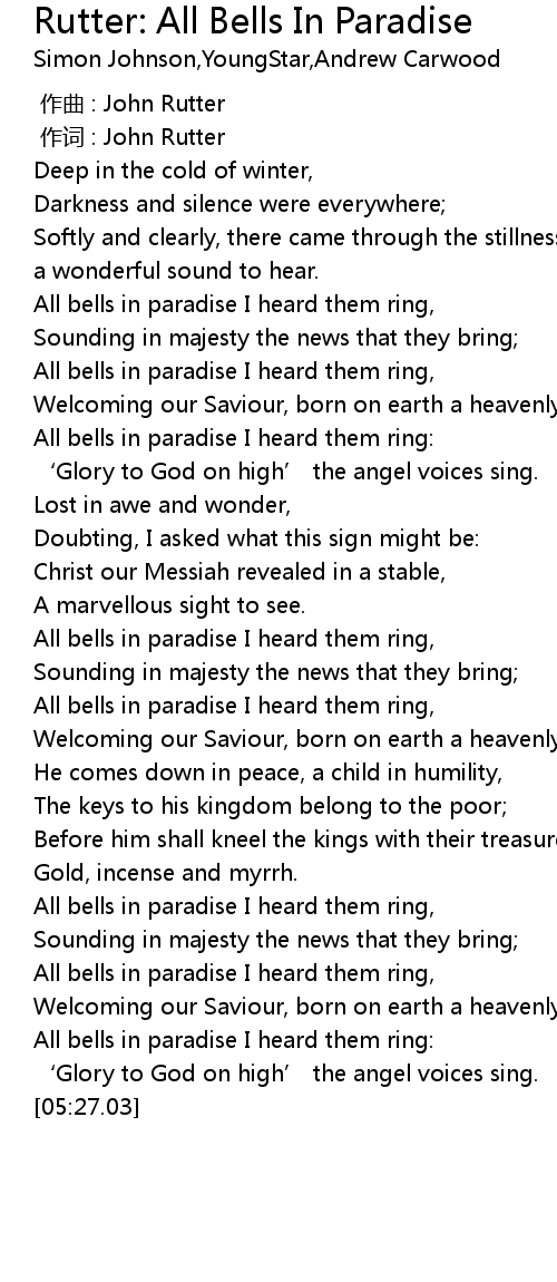 | [04:41.97] | All bells in paradise I heard them ring: |
