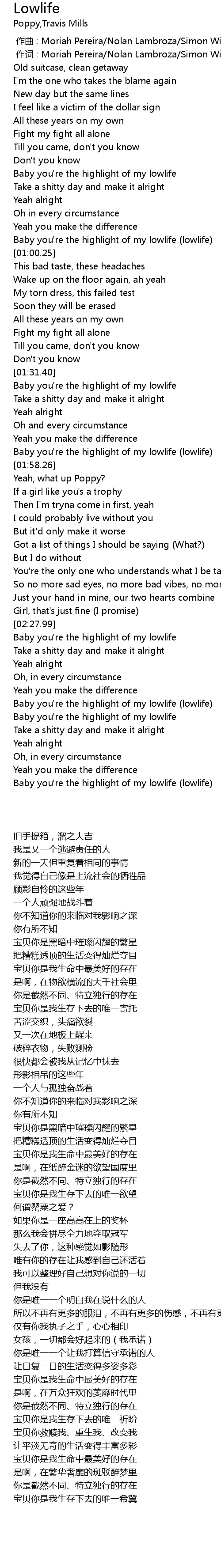 | [00:53.92] | Baby you' re the highlight of my lowlife lowlife |