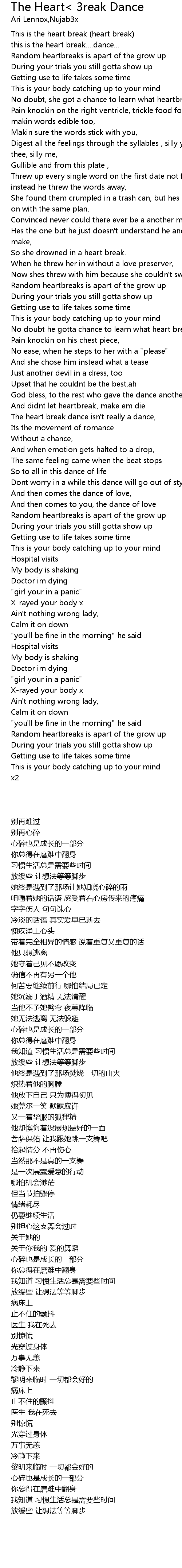 The Heart< 3reak Dance Lyrics