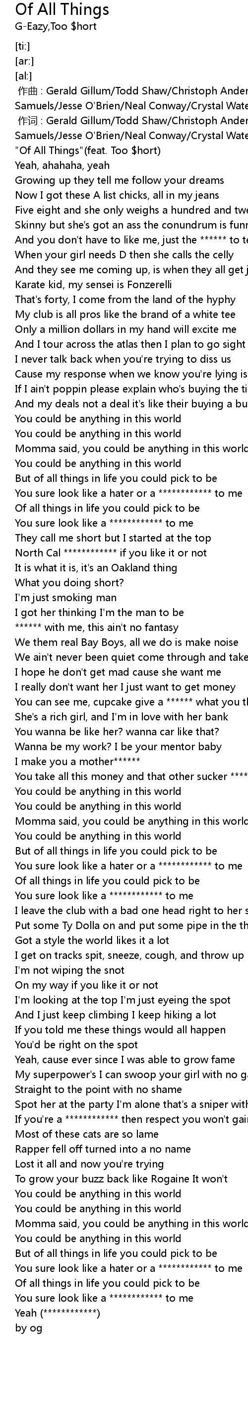 | [00:00.00] | "Of All Things"(feat. Too $hort) |