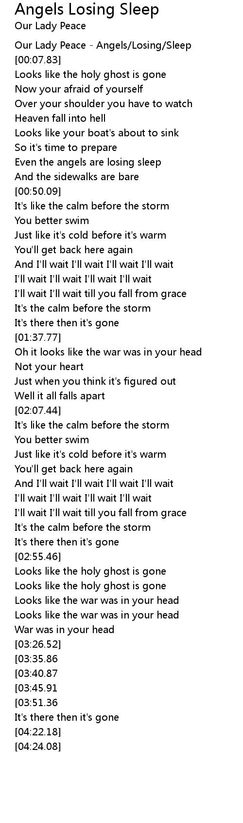 Angels Losing Sleep Lyrics