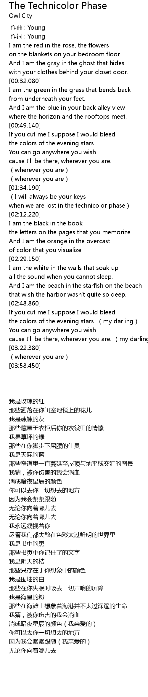 | [03:09.000] | the colors of the evening stars. (my darling) |