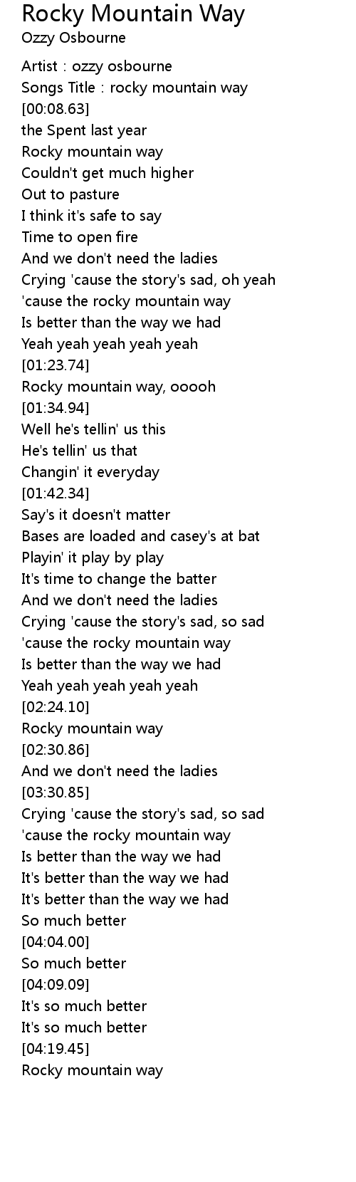 | [01:25.32] | Rocky mountain way, ooooh |
