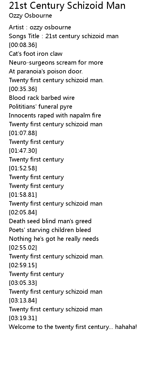 | [00:03.62] | Songs Title:21st century schizoid man |