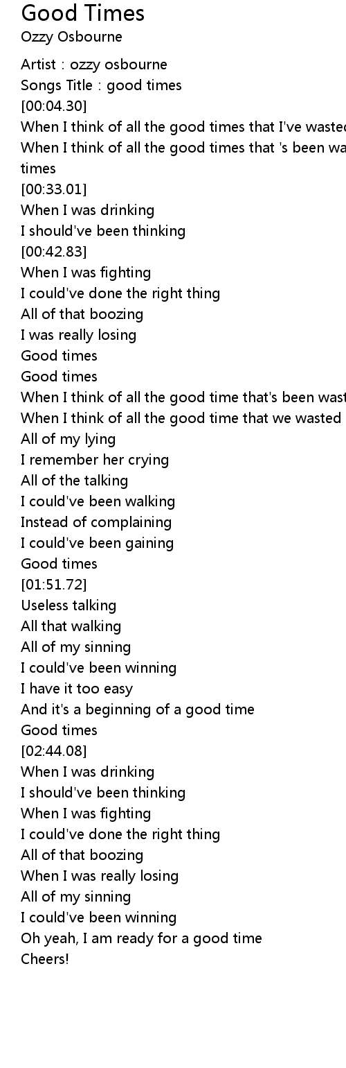 | [00:25.84] | When I think of all the good times that ' s been wasted having good times |